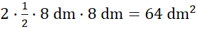 Przyjrzyj się rysunkowi: zarówno z żółtych, jak i z niebieskich płytek można zbudować po 2 kwadraty o przekątnej długości 8 dm. Wylicz pole kwadratu jako połowa iloczynu jego przekątnych.