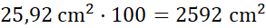 Odpowiedź: Powierzchnia jednego biletu to 25,92 cm2, a 100 biletów – 2592 cm2.