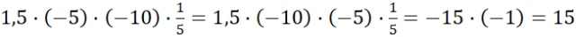 Grupa II: pomnóż liczbę 1,5 przez 10 oraz liczbę (–5) przez ułamek. Następnie pomnóż przez siebie wyniki.
