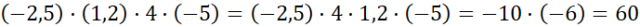 Grupa I: najpierw pomnóż liczby (–2,5) i 4 – otrzymasz 10. Przesuń przecinek w liczbie 1,2 o jedno miejsce w prawo i pomnóż wynik przez (–5).