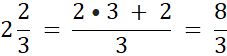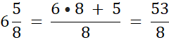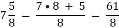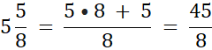 Z liczb 5, 6, 7 oraz dwóch ułamków ⅔ i ⅝ utwórz liczby mieszane, a następnie zamień je na ułamki niewłaściwe.