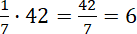 Jedna siódma liczby 42 jest dwa razy mniejsza od dwóch siódmych liczby 42.