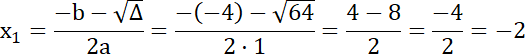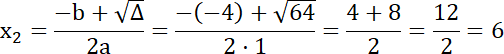∆ = b2 – 4ac = (–4)2 – 4 · 1 · (–12) = 64