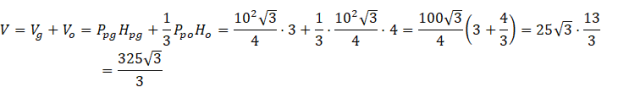 W metodzie pierwszej zarówno graniastosłup, jak i dorysowany ostrosłup w swojej podstawie mają trójkąt równoboczny o boku długości. Objętość szukanej bryły oblicz jako ich sumę.