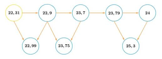 Uzupełnij schematy, wpisując liczby spośród: 25,3; 24; 23,7; 23,75; 23,79; 22,99; 22,9 w taki sposób, aby mniejsza liczba znajdowała się na początku strzałki.