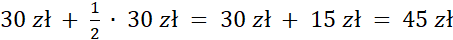 Najpierw obliczamy koszt 1 sekundy reklamy w godzinach porannych, dzieląc koszt reklamy na liczbę sekund jej trwania. Następnie obliczamy koszt 1 sekundy reklamy w godzinach największej oglądalności, poprzez dodanie kosztu 1 sekundy reklamy w godzinach porannych dodatkowej połowy tej ceny. Na koniec obliczamy koszt 18 sekund reklamy w godzinach największej oglądalności poprzez pomnożenie kosztu 1 sekundy reklamy razy liczbę sekund trwania tej reklamy.