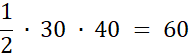 Długość pionowej przyprostokątnej: 60 – 20 = 40 cm