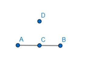 Narysuj cztery punkty w taki sposób, aby trzy z nich leżały na jednej prostej, ale żeby dało się także znaleźć trzy, które do jednej prostej nie należą.