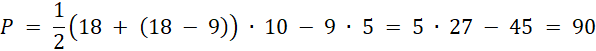 Zamalowana figura to trapez z wyciętym małym równoległobokiem. Jego pole jest równe: