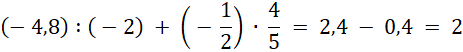 Podziel -4,8 przez -2 i dodaj iloczyn liczb
