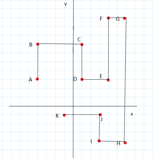 W tym zadaniu musisz zaznaczyć na układzie współrzędnych podane punkty, aby obliczyć długość łamanej ABCDEFGHIJK.