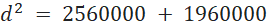 Odległość między nimi jest zatem równa: