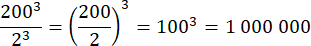 Aby obliczyć, ile sześcianów o krawędzi 2 cm otrzymamy po rozcięciu sześcianu o krawędzi 200 cm, podziel objętość większego sześcianu przez objętość małego (objętość sześcianu to trzecia potęga długości jego krawędzi):