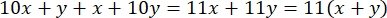 W tym zadaniu udowodnij, że suma liczby dwucyfrowej i liczby powstałej z przestawienia cyfr w tej liczbie jest podzielna przez 11.