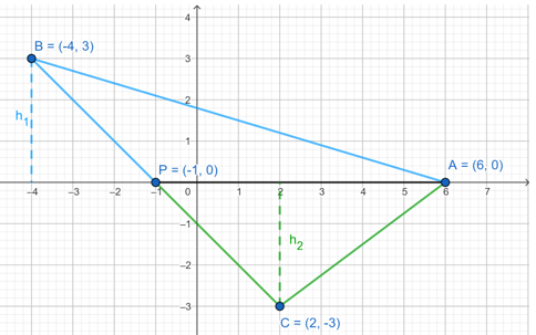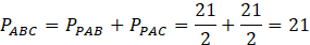 Oblicz pole trójkąta ABC. Zauważ, że możesz je obliczyć sumując pola obliczonych wcześniej trójkątów PAB i PAC.