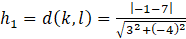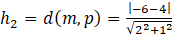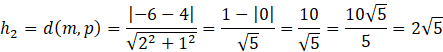 Jedną z wysokości jest odległość między prostymi i a drugą jest odległość między prostymi i :