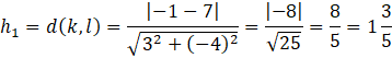 W tym zadaniu musisz obliczyć wysokości równoległoboku, wiedząc, że jego boki zawierają się w prostych , , .