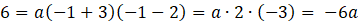 Podstaw współrzędne punktu (-1, 6) do wzoru funkcji, otrzymując równanie, z którego następnie oblicz wartość współczynnika a.