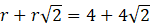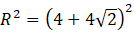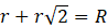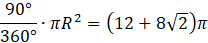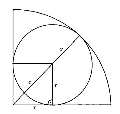 Następnie wykonaj rysunek pomocniczy, na którym zaznacz koło wpisane w wycinek. Zauważ, że po poprowadzeniu promieni koła do punktów styczności z promieniami wycinka otrzymasz kwadrat o boku r. Oblicz długość jego przekątnej d, korzystając ze wzoru