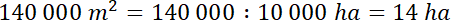 . Zamień metry kwadratowe na hektary, korzystając z tego, że