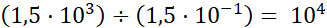 Pomnóż lub podziel odpowiednie wartości. Zwróć uwagę, że mnożenie jest przemienne – możemy osobno pomnożyć pierwsze czynniki i zsumować wykładniki przy liczbie 10. Przy dzieleniu możemy podzielić pierwsze czynniki, a potem odjąć wykładniki przy potęgach 10.