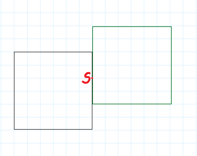 Narysuj kwadrat i figurę do niego symetryczną względem podanego punktu, oblicz pole i obwód figury, jaką tworzy kwadrat ze swoim symetrycznym odbiciem.