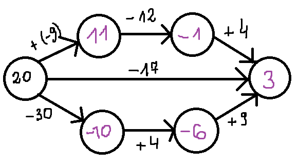 Odejmowanie liczby dodatniej można zastąpić dodawaniem liczby przeciwnej (czyli ujemnej) np. 3 + (-4) = -1. Wykonaj dodawanie i odejmowanie.