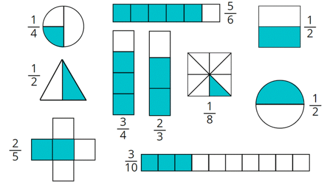 W tym zadaniu musisz zamalować odpowiednie części figur.