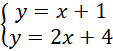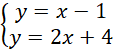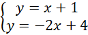 Do wykresu prostej malejącej należą punkty (0,4) i (1,2). Druga prosta ma równanie