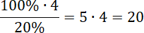 Wiedząc, że 20% szukanej liczby wynosi 4, oblicz 100%