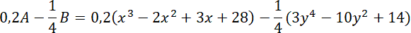 Od 20% wartości wyrażenia A odejmij jedną czwartą wartości wyrażenia B. To zdanie jako wyrażenie zapisz: