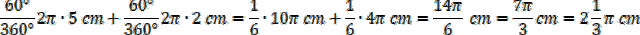 Aby obliczyć obwód, należy dodać do siebie obwody wycinków kół o promieniach 2 oraz 5.