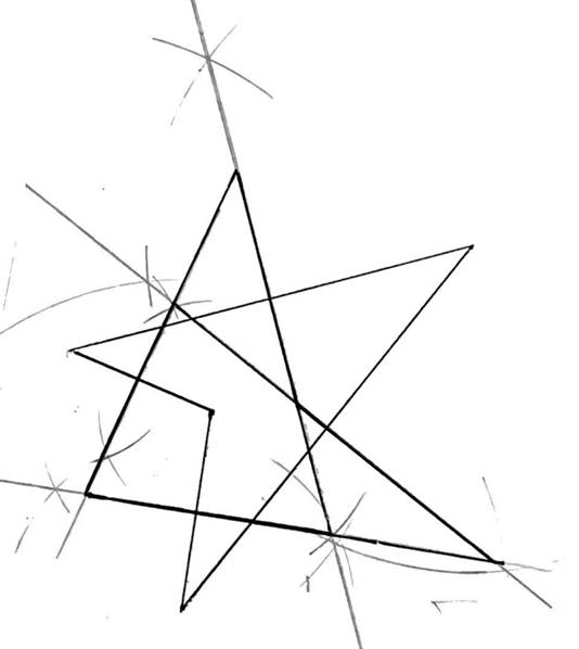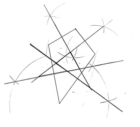 . Następnie przy użyciu cyrkla wyznacz symetralną każdego boku.