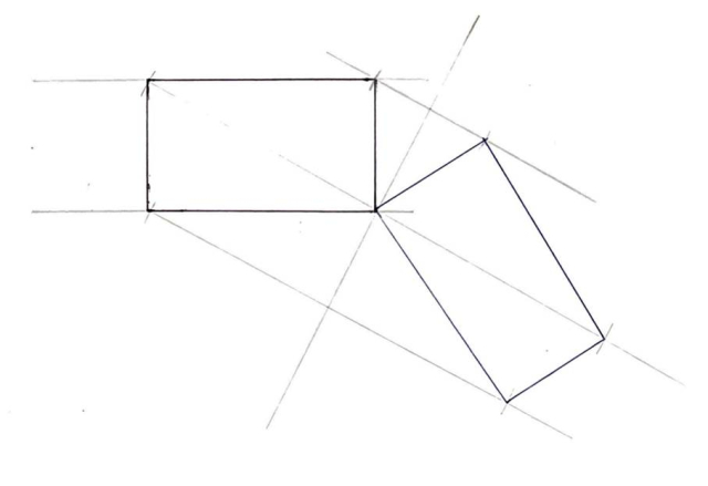 Narysuj prostokąt oraz prostą l przechodzącą przez jeden z jego wierzchołków. Następnie wyznacz prostą prostopadłą do l przechodzącą przez pozostałe wierzchołki prostokąta. Przy użyciu cyrkla omierz odległość wierzchołków od prostej (wbijając cyrkiel w punktach przecięcia) i zaznacz punkty symetryczne. Połącz punkty, tworząc symetryczny prostokąt.