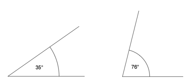 W tym zadaniu odszukaj w tabeli lub oblicz za pomocą kalkulatora tg 76° oraz tg 35°. Nie używając kątomierza, narysuj jak najdokładniej kąty o miarach 76° i 35°.