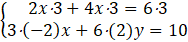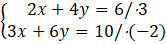 Obliczamy metoda przeciwnych współczynników, pierwsze równanie obustronnie mnożymy przez 3 a drugie przez –2: