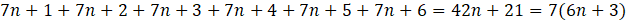 Udowodnij, że suma sześciu kolejnych liczb całkowitych niepodzielnych przez 7 dzieli się przez 7.