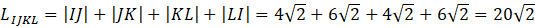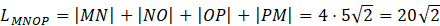 Na początku wyznaczamy współrzędne środków wskazanych boków ośmiokąta, wiedząc, że jego współrzędne są średnią odpowiednio pierwszych i drugich współrzędnych końców odcinka. Następnie obliczamy długości boków czworokątów, stosując wzór