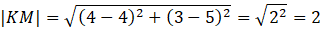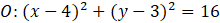 Wyznacz równanie okręgu opisanego na trójkącie równobocznym, wiedząc, że środkiem jednego z boków jest punkt K(4, 5) oraz punkt M(4, 3) jest punktem przecięcia wysokości tego trójkąta.