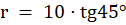 Zauważ, że wysokość przekroju poprzecznego stożka dzieli go na dwa przystające trójkąty równoramienne prostokątne o przyprostokątnych długości 10 i kątach 45°, 45° i 90°.