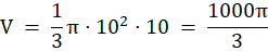 W tym zadaniu musisz obliczyć objętość stożka o kącie rozwarcia 90° oraz wysokości 10.