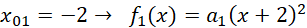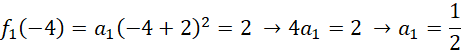Do pierwszej paraboli należy np. punkt (-4, 2), skąd możemy obliczyć parametr a1: