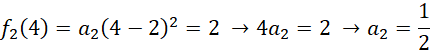 Do pierwszej paraboli należy np. punkt (4, 2), skąd możemy obliczyć parametr a1: