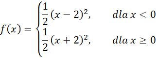 Z wykresu można odczytać, że pierwsza parabola występuje dla przedziału (-∞, 0) a druga dla przedziału <0, +∞):