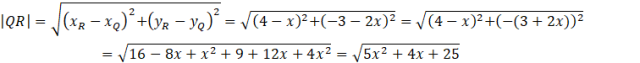 |PQ|=|QR|, więc |PQ|2=|QR|2