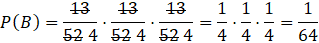 B – w trzech losowaniach wylosuje się piki