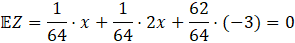 x – kwota wygranej w przypadku wylosowania trzech kierów