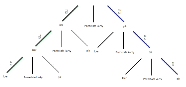 A – w trzech losowaniach wylosuje się kiery