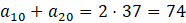 W tym zadaniu musisz obliczyć sumę wyrazu dziesiątego i dwudziestego arytmetycznego ciągu (an), dla którego zachodzi a15 = 37.