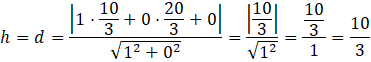 Bok OB ma długość 7 (gdyż oba punkty są na osi OY, więc wystarczy odjąć od siebie drugie współrzędne). Aby obliczyć długość wysokości opuszczonej na ten bok z punktu A skorzystaj ze wzoru na odległość punktu od prostej. Równanie osi OY w postaci ogólnej ma także postać x = 0, więc współczynnik A wynosi 1, zaś B oraz C wynoszą 0. Podstawiając te współczynniki oraz współrzędne punktu A otrzymasz: